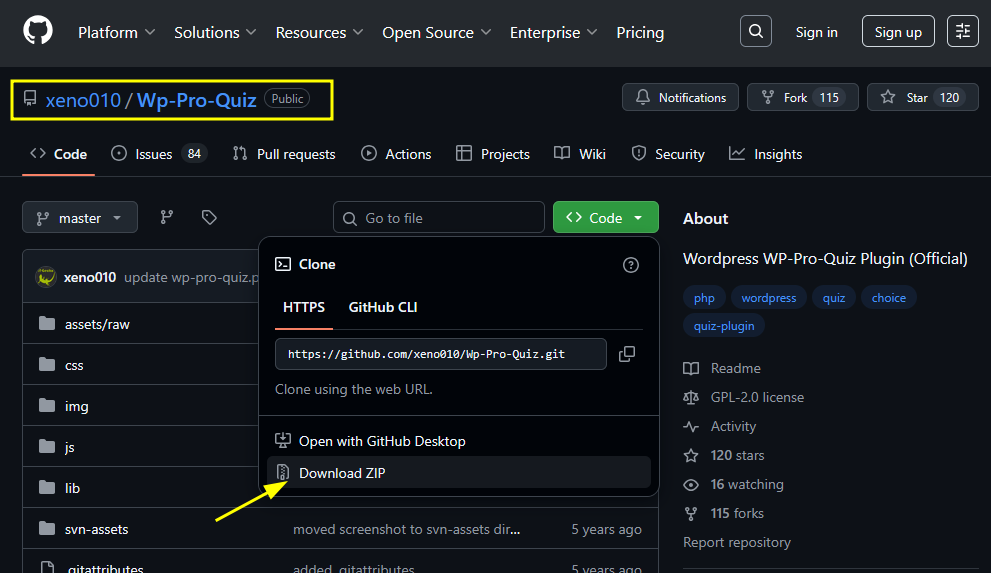 - A ZIP file (Wp-Pro-Quiz-master.zip) will be downloaded to your computer.